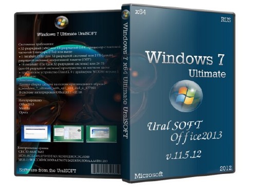 Основа - русский оригинальны образ от MSDN. Интегрированы обновления по октябрь 2012 года, отключены контроль учетных записей и гибернация. Активация - автоматическая. Система чистая. После установки получаете активированную и зарегистрированную русскую версию Windows 7 Максимальная SP1, которая проходит проверку на валидность на сайте Microsoft.